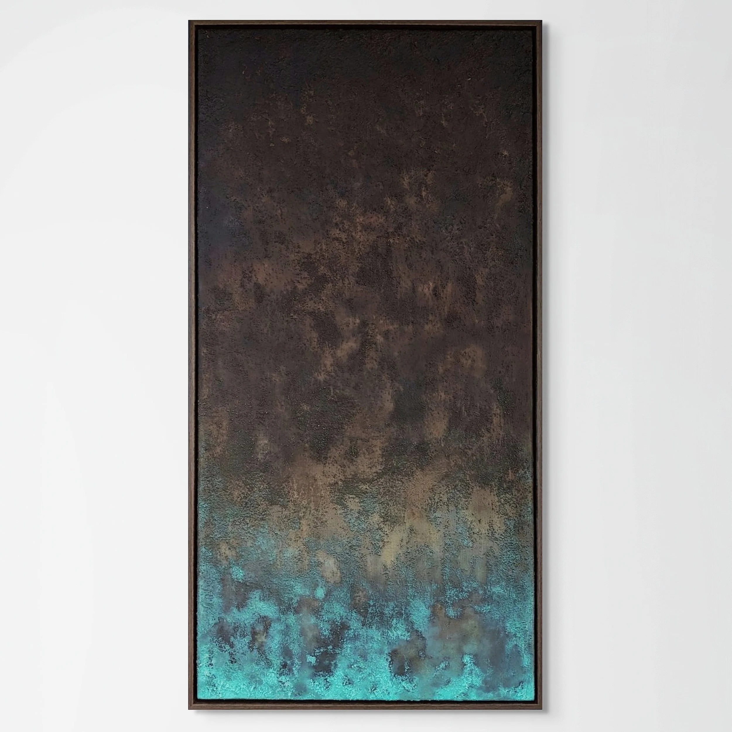 “In this series, I intricately incorporate the echoes of natural processes into my work. The intentional cultivation of three-dimensional textures pays homage to the transformative forces witnessed in the natural world. These textures emulate the rugged surfaces shaped by the relentless hands of time, mirroring decay and erosion.”